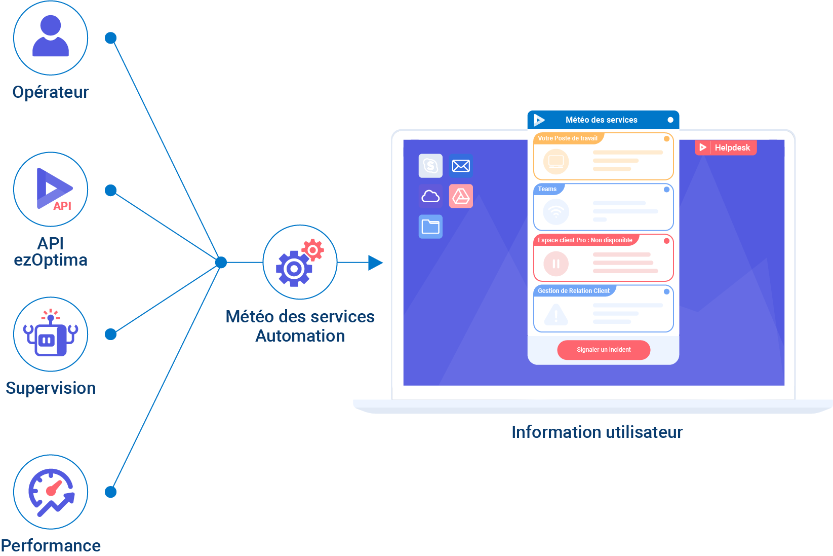L’email est bien souvent la solution choisie par défaut pour communiquer l’état du SI. Or, les utilisateurs croulent sous des montagnes d’emails et les communications des équipes informatiques deviennent de moins en moins efficaces. Météo des Services réinvente la manière de communiquer : proactivité, temps réel, ciblage, et efficacité.