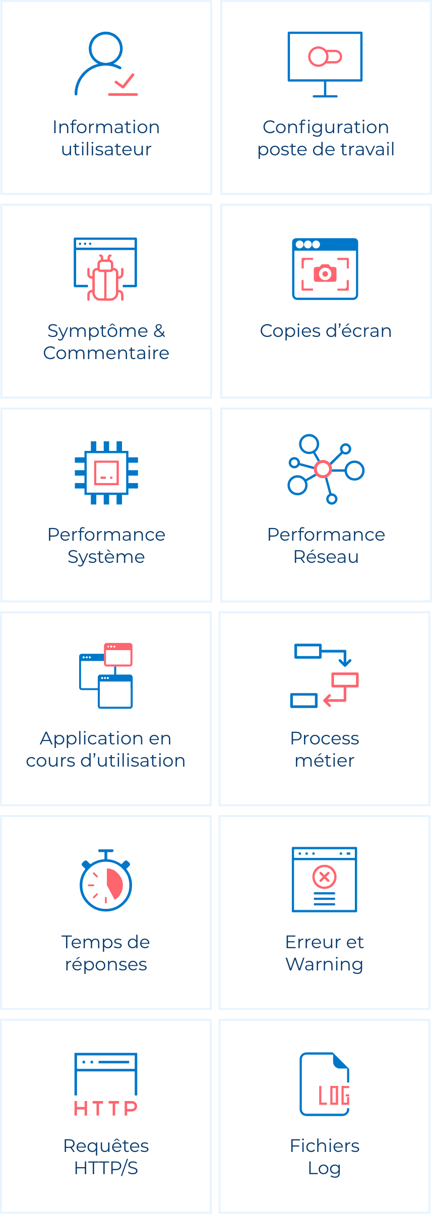 Collecter des informations factuelles et contextuelles pour comprendre l’origine d’un incident utilisateur est devenu une tâche difficile et chronophage, qui par conséquent, fait croitre le Backlog, le délai de résolution et met vos équipes à de rudes épreuves.
